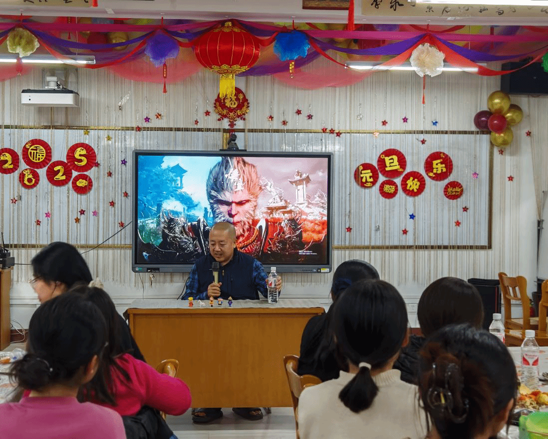 为迎接新的一年,公司于12月26日在北区208室举办了一场别开生面的师生元旦联谊会。此次活动涵盖了丰富多彩的内容,包括包饺子活动、员工才艺展示、曲老师的《黑神话:悟空》读书分享会,以及安经理和曲老师的精彩唱歌表演,现场气氛热烈、欢乐祥和,师生们度过了一个温馨难忘的夜晚。