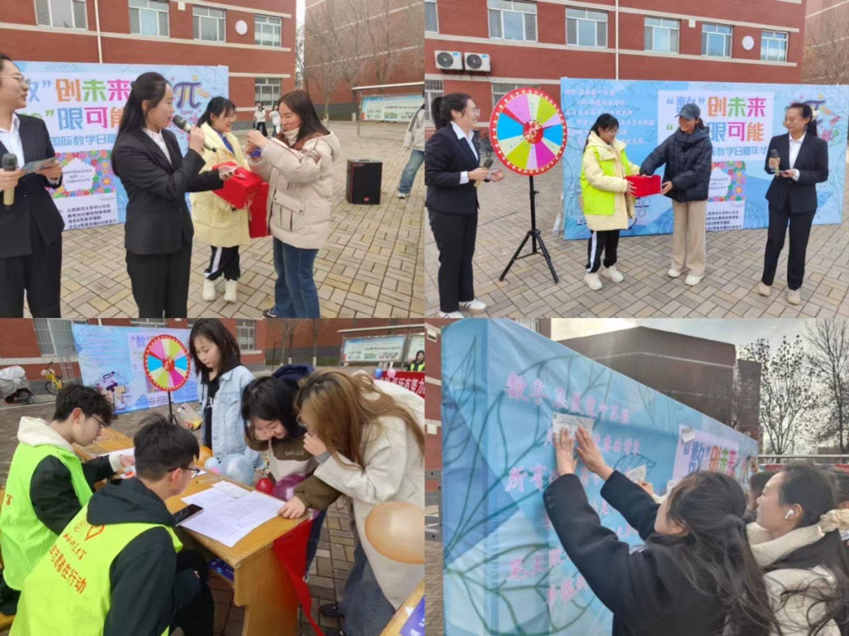 3月15日,南区6号教学楼前开展了数学嘉年华活动。同学们凭入场券参与游戏,在《π韵诗境》、《π记迷踪》、《知识连线》等六个小游戏中集章打卡,现场气氛热烈。表演活动在活力四射的开场舞《像你这样的朋友》中拉开序幕,随后对口相声《学数学》、歌曲《闪耀》、《Love story》、大合唱《最美的太阳》展现了青春的活力与浪漫,让同学们在欢笑中增进了对数学的喜爱。
